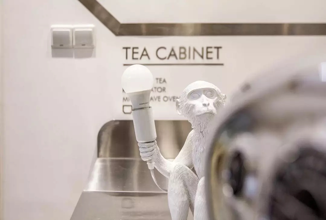 這些無厘頭的元素一方面均衡的軟化整個(gè)空間,另一方面讓我們?cè)诿β禃r(shí)候,大開腦洞。工作之余,一抬頭,會(huì)心一笑,累的時(shí)候,一杯咖啡,坐在窗邊放飛一下自我;