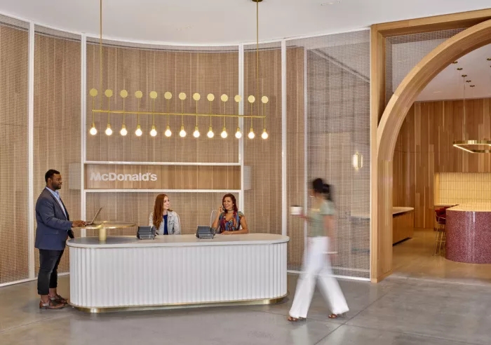 麥當勞總部芝加哥接待區(qū)對金色拱門進行了微妙的點頭