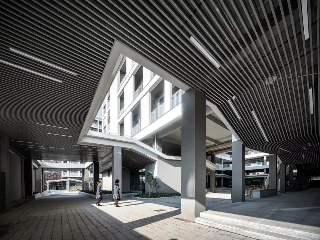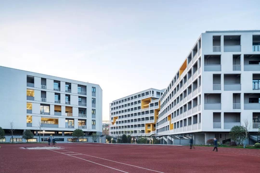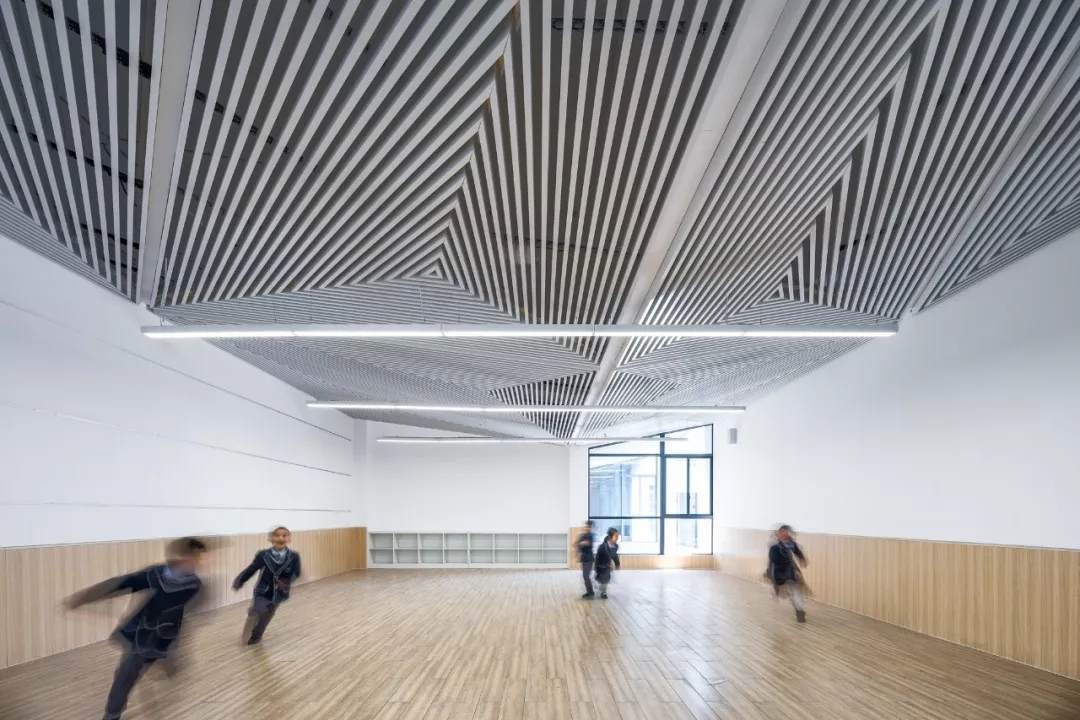 整個(gè)學(xué)校的概念策略、空間形態(tài)和場(chǎng)所定義描繪了一副全新生動(dòng)的體驗(yàn)式教學(xué)圖景,設(shè)計(jì)作為實(shí)現(xiàn)的媒介為義烏新世紀(jì)外國(guó)語學(xué)校的師生提供了更多的教育體驗(yàn)和可能性。而貫穿其中的設(shè)計(jì)聚焦點(diǎn):教育類空間在城市高密度環(huán)境中的微妙立場(chǎng)、國(guó)際化教學(xué)體系與傳統(tǒng)國(guó)學(xué)文化兼容并重的有機(jī)教學(xué)空間建筑空間、面向未來的傳統(tǒng)空間體驗(yàn)營(yíng)造,也是飛速城市化進(jìn)程中的中國(guó)所普遍面臨的問題,更是零壹城市一直以來并且會(huì)持續(xù)關(guān)注的高密度城市與教育空間問題的研究點(diǎn)。