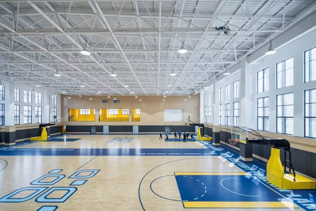國(guó)際學(xué)術(shù)交流中心包含了教師辦公、教育培訓(xùn)以及少量餐飲空間,建筑高度達(dá)45米;風(fēng)雨操場(chǎng)可容納兩個(gè)標(biāo)準(zhǔn)籃球場(chǎng),豐富學(xué)校的體育運(yùn)動(dòng)功能。將國(guó)際化與本土化所需要的教學(xué)空間有機(jī)結(jié)合。