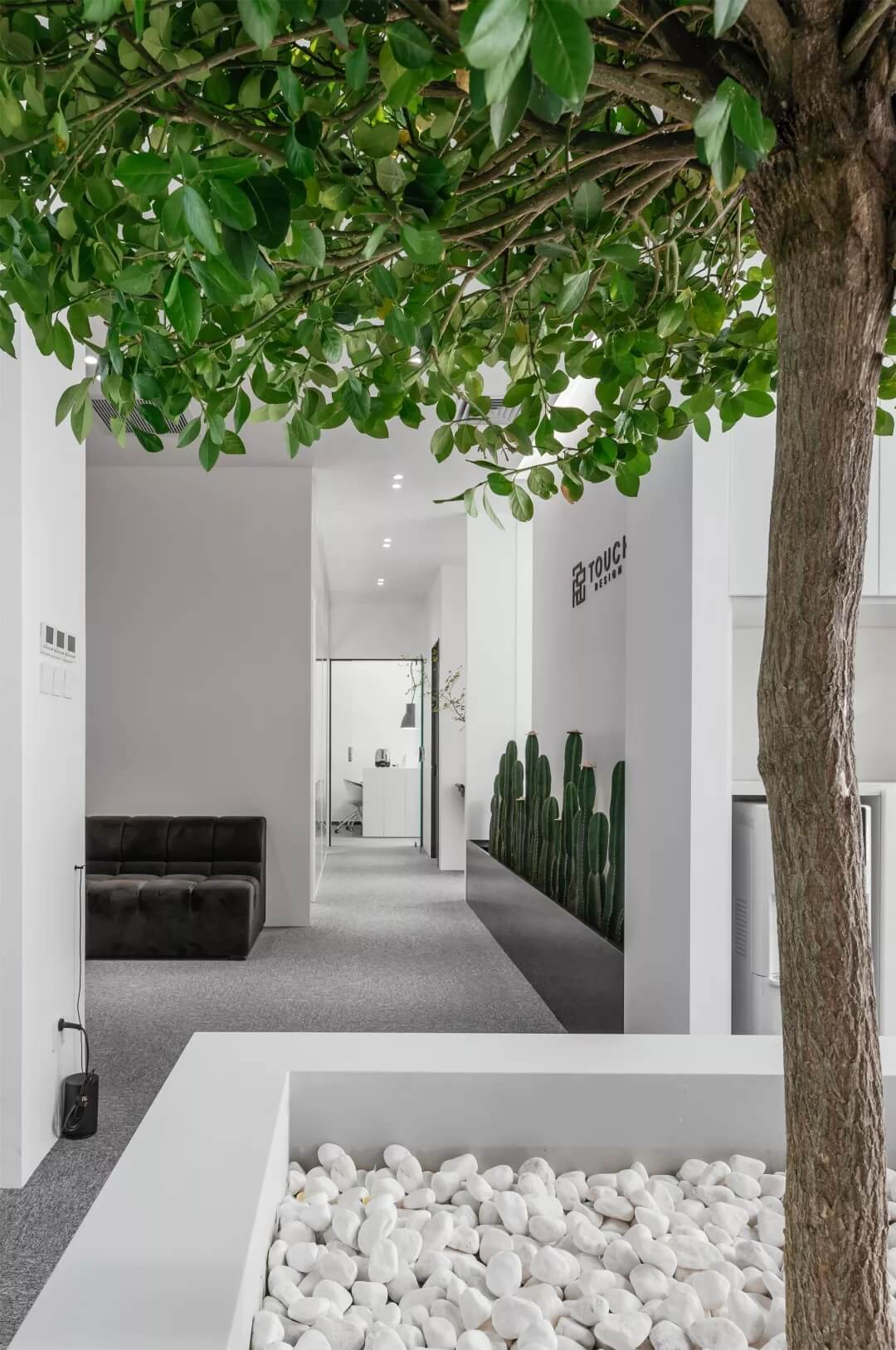 觸覺設(shè)計巧妙擷取文化于當(dāng)代都會空間,展現(xiàn)出雅致韻味的同時留下了更多觸碰的余地。綠植來點亮辦公場所的鮮活生命力,清逸的色彩是思想游龍的軌跡,在留白的空間中伸出觸角,觸覺所及之處,思維綻放遐想。