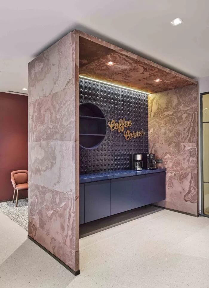 巧克力學(xué)院作為該項目的重要組成部分,其設(shè)計目的是讓每位客人都能在進入Barry Callebaut Istanbul時,被其獨特的魔力所俘虜。于是,這個美麗的色彩,鼓舞人心的形狀,優(yōu)雅的款待 - 就被抽象出來,為辦公室裝修營造出別致的建筑環(huán)境。擁有色彩繽紛,令人驚嘆的空間,捕捉其最重要產(chǎn)品 - 巧克力的精華,優(yōu)雅和美味。