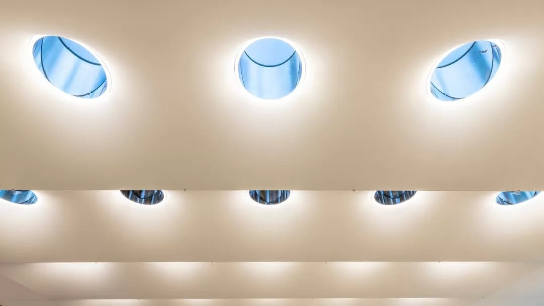 這個半透明的磨砂天窗,只允許自然光進入。隨著自然光的變化,天窗底的燈光也會隨之變化,使室內一直保持良好的照明環(huán)境。