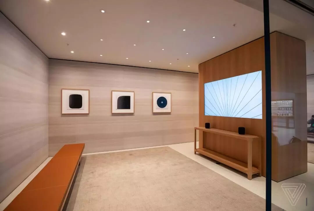 該店鋪內重新設計了攝影大道,其背景墻適用于新款手機的拍照測試,這里也是世界上第一個開設專門展示AirPods的大道的商店。
