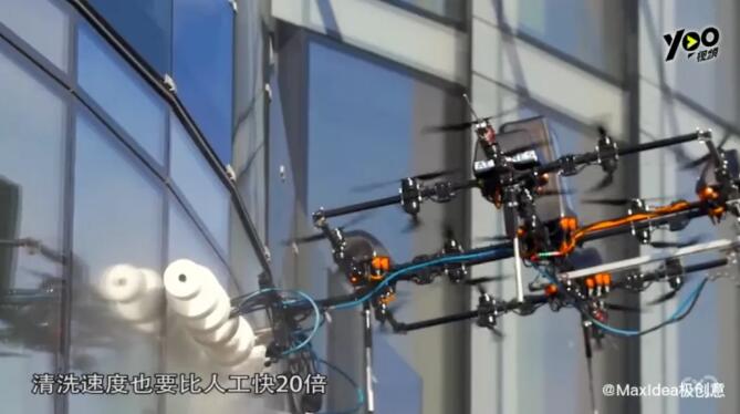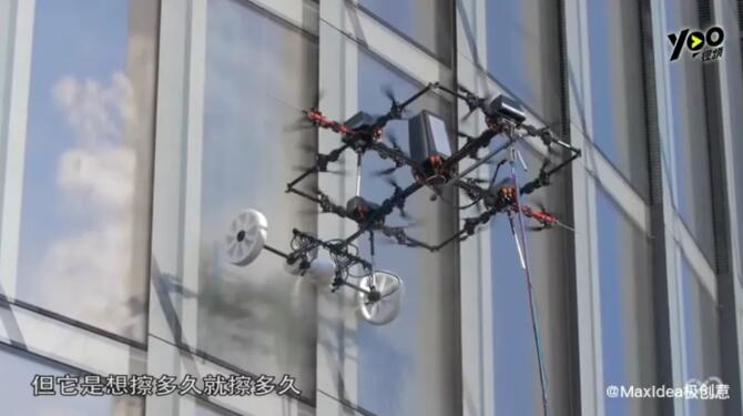 ▲無人機擦拭玻璃 輕松給玻璃幕墻來一套大保健 “蜘蛛人”有可能要失業(yè)了