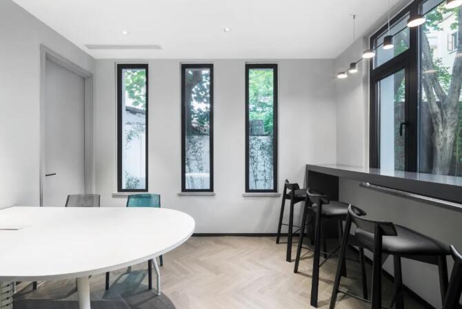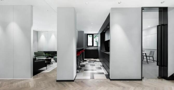 室內(nèi)為符合當(dāng)代辦公需求,定位現(xiàn)代簡(jiǎn)約時(shí)尚的風(fēng)格,白色和黑色的主色調(diào),中間銜接色的灰色調(diào),將一至三樓空間一氣呵成,沒有多余的修飾,打造出一個(gè)宜居、充滿藝術(shù)氣質(zhì)的住宅式辦公環(huán)境。