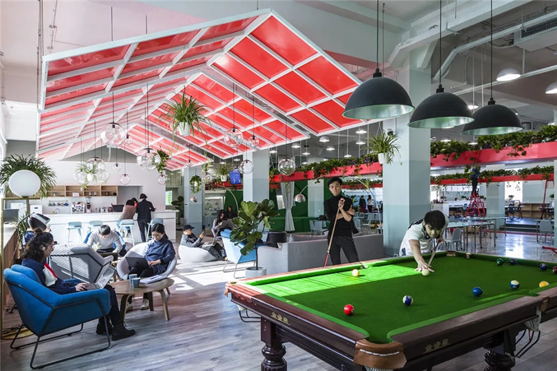 樂平基金會是一家以社會創(chuàng)新著稱的非營利機構(gòu)。在他們1100㎡的辦公空間中,我們提出的基礎(chǔ)理解是適度的身體活動對大腦有益:劇烈運動通常會影響工作,但適量的活動則反而有益。在工作的同時進行一定程度的輕微運動,健康的效果堪比短暫的劇烈運動。因此設(shè)計提供了大量邊工作邊活動的機會,豐富辦公模式,也增加休息的途徑。