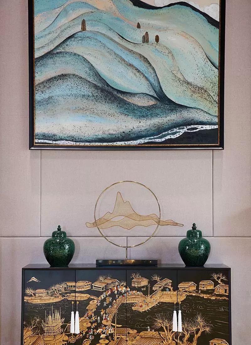 “湖光山色”項目位于西安歷史遺址觀光帶上,毗鄰鎬京遺址公園與斗門水庫,四周環(huán)境怡然靜雅,歷史文化氣息濃厚,近期其營銷中心已完工,軟裝設(shè)計交由深圳印象空間呈現(xiàn)。結(jié)合周圍環(huán)境及甲方需求,印象空間最終將西安古都情懷融于作品中,于細微之處傳遞意境之美。