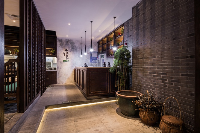 從遠處望過來,一座江南小院落入眼中,白墻青瓦小橋流水,以清靈的體態(tài),展示萬般風韻。 經(jīng)典的江南建筑別有恬靜內(nèi)秀的韻味,而江南院落給人一種,優(yōu)雅、寧靜、親切的感覺,正是生活在浮躁社會中的我們所缺失的,所以在本案中設計師以江南的小院的作為此次設計主題。無論是舊時還是依稀,江南水鄉(xiāng)的一山一水一物,均是文人墨客筆下的絕妙勝景,盡顯江南的風情。而這次,跟緊我的腳步來領略屬于江南的意境。 整個店面的平面布局是根據(jù)江南小院建筑布局來延伸切入,以格局的形式將餐廳分成了院入口,陽臺,閨房等五大板塊。江南建筑,高低錯落,古樸幽靜,含蓄內(nèi)斂。 有的枕山面水,有的面河而居,有的夾河而造,清澈的河水,輕盈的小橋,窄窄的街巷,深深的庭院,凝練成江南水鄉(xiāng)傳統(tǒng)民居的典型意境。 為了把這意境體現(xiàn)的淋漓盡致,設計師將入口處抬高,錯落有致,營造出“曲徑通幽處,禪房花木深”的氛圍,令人漸入佳境,而這對空間的分割,避免平鋪直敘的蒼白,也是為餐廳增添了幾分寧靜。 |